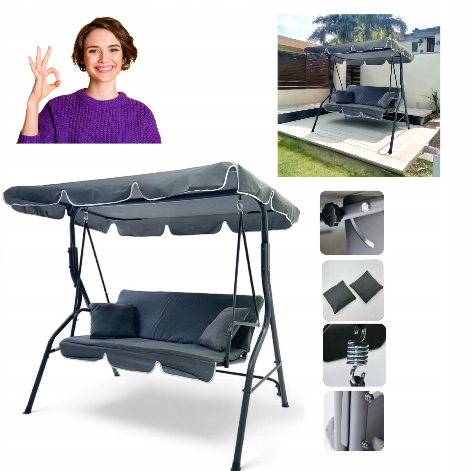 ⭐HUŚTAWKA OGRODOWA 3 OSOBOWA SZARA BUJANA REGULOWANY DASZEK MOCNA 240KG⭐