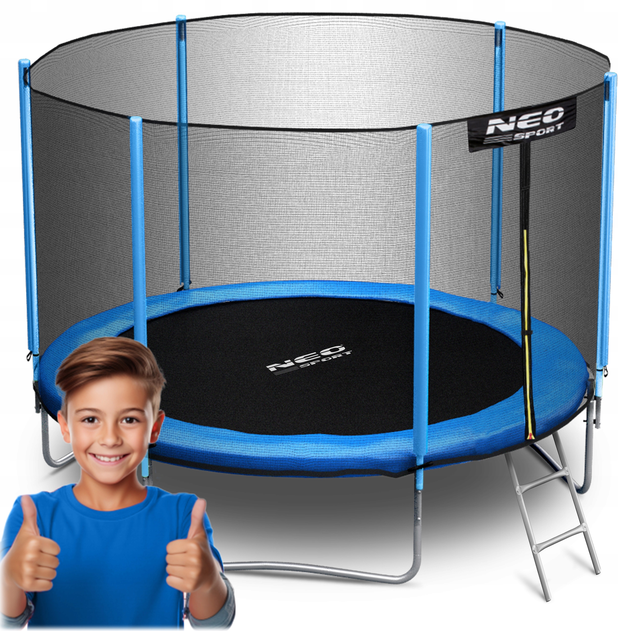 Stelaż trampoliny NEO SPORT został wykonany z wysokiej jakości stalowych rurek ocynkowanych, odpornych na korozję, promieniowanie UV i intensywne użytkowanie.